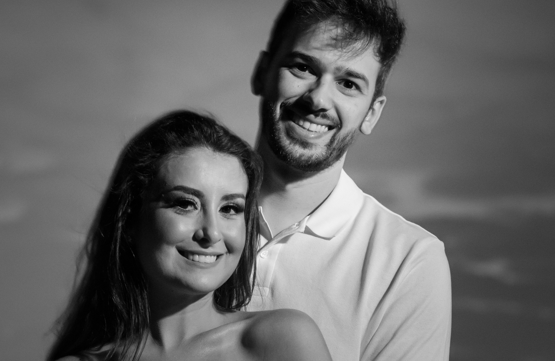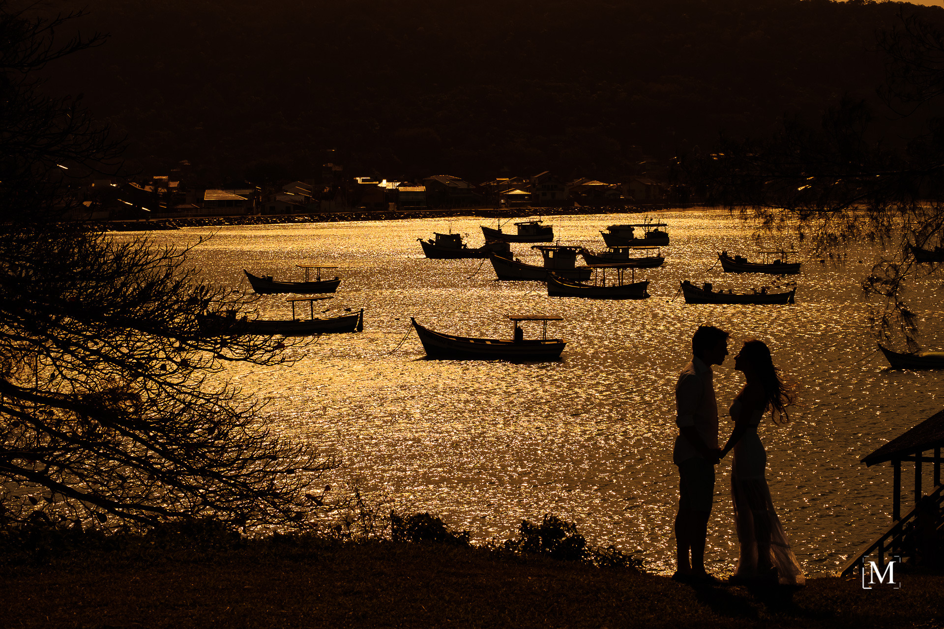 "Queríamos muito pegar o nascer do sol na praia da Armação e queríamos que as fotos fossem leves, descontraídas, sem muito compromisso com poses ou “fotos já feitas”. Apostamos na criatividade e nas inspirações do nosso fotógrafo Lauro Maeda e acertamos em cheio! Sentimos uma alegria imensa ao ver que as fotos tinham ficado muito melhores do que havíamos imaginado. Essas fotos são muito importantes porque trazem com elas as memórias daquele dia. O álbum decora a sala da nossa casa e está sempre ali nos lembrando daqueles momentos. Ver essas fotos nos faz reviver aquele dia."