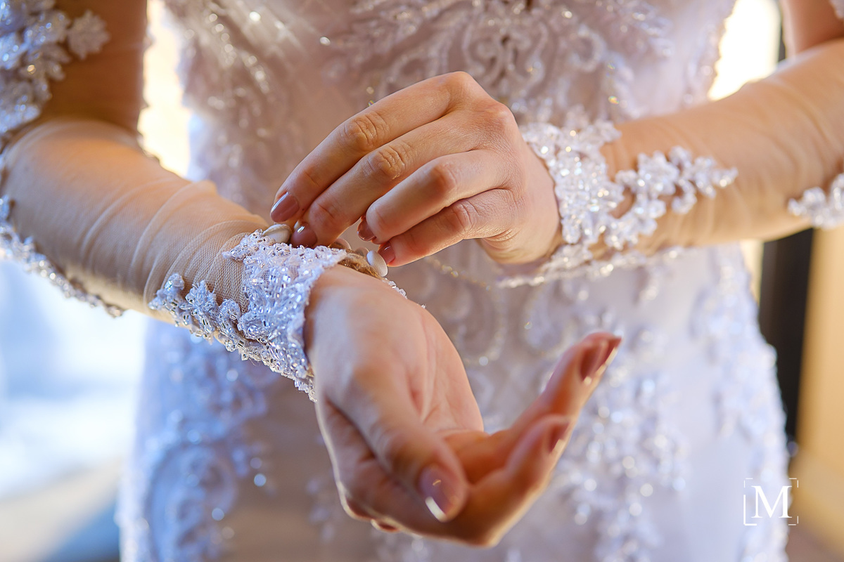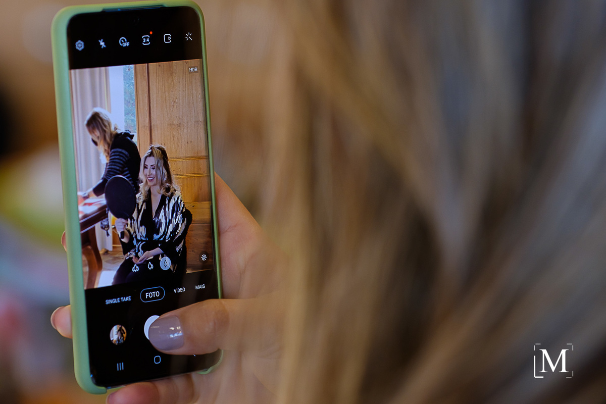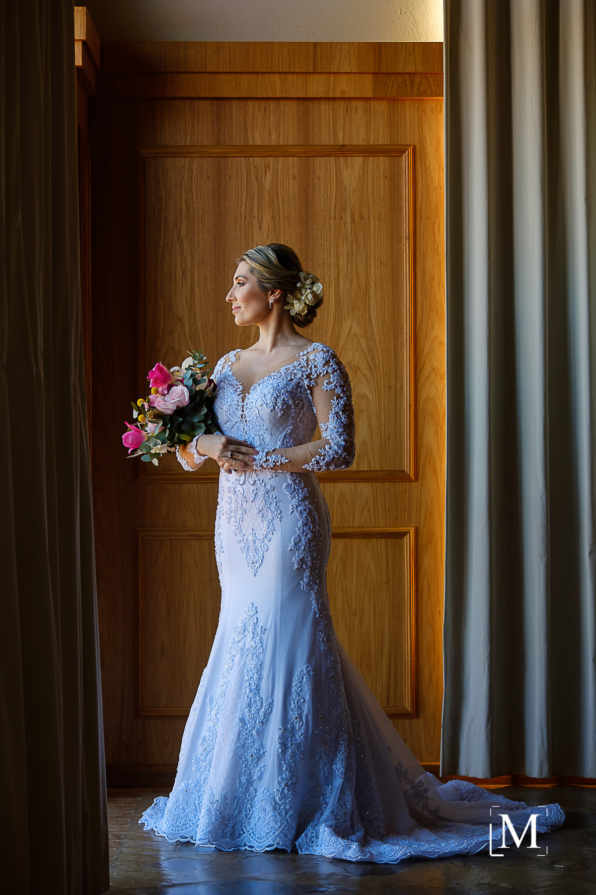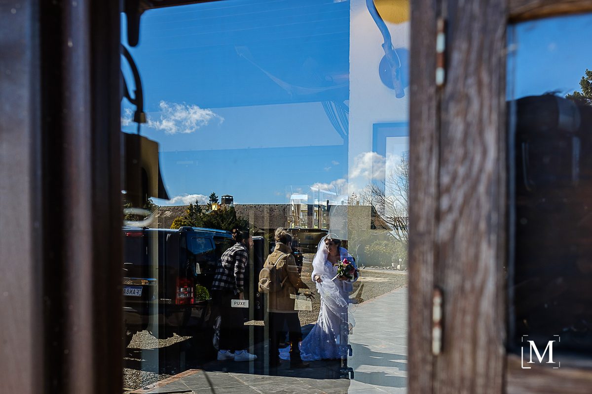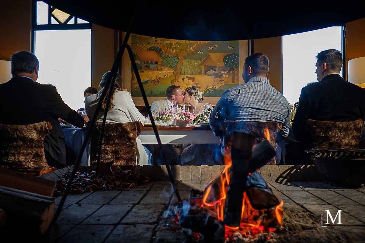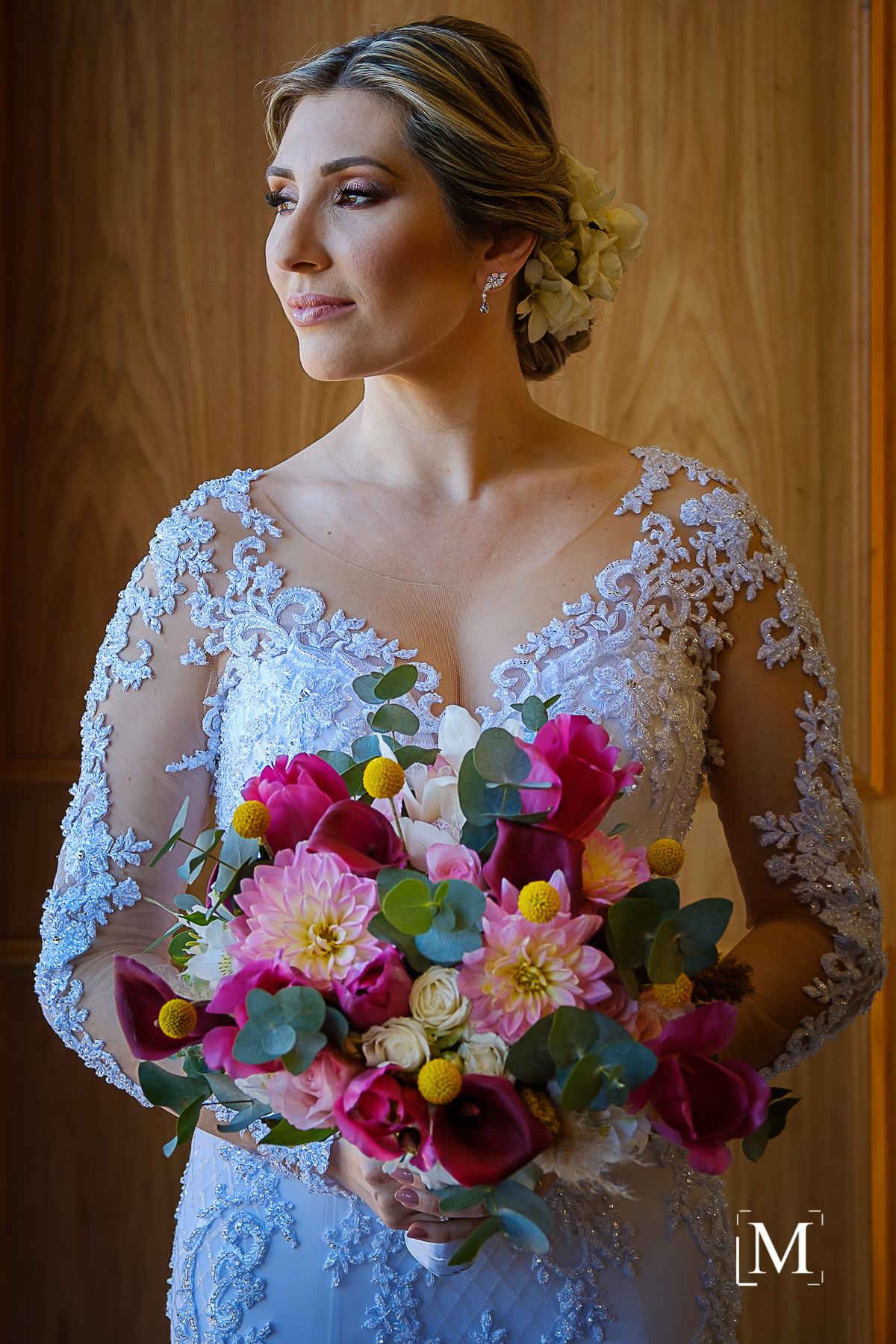 O dia amanheceu daquele jeito! Quase nenhuma certeza de que a chuva não faria uma visita, mas a esperança e a fé de todos nós deu muito certo! O sol apareceu forte, mas não ajudou muito na temperatura, que ficou ali na casa dos 10 graus... Cerimônia linda, reunindo apenas familiares e amigos íntimos, foi no local que o vento permitiu. Protegida por uma parede de árvores, o Raphael Faraco conduziu a celebração da troca de alianças. Aguardamos um tempo com a esperança da temperatura subir um pouco, mas foi em vão. Decidimos, então, subir no "topo" do Resort para fazermos algumas fotos do casal. O frio lá em cima era tanto que não aguentamos mais do que 10 minutos fora dos carros. As expressões dos noivos dizem tudo!